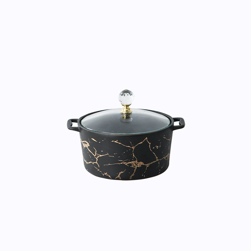 Nordic gold pattern ceramic small stew cup round household bird's nest cup amphora water stew pot with glass lid stew bowl