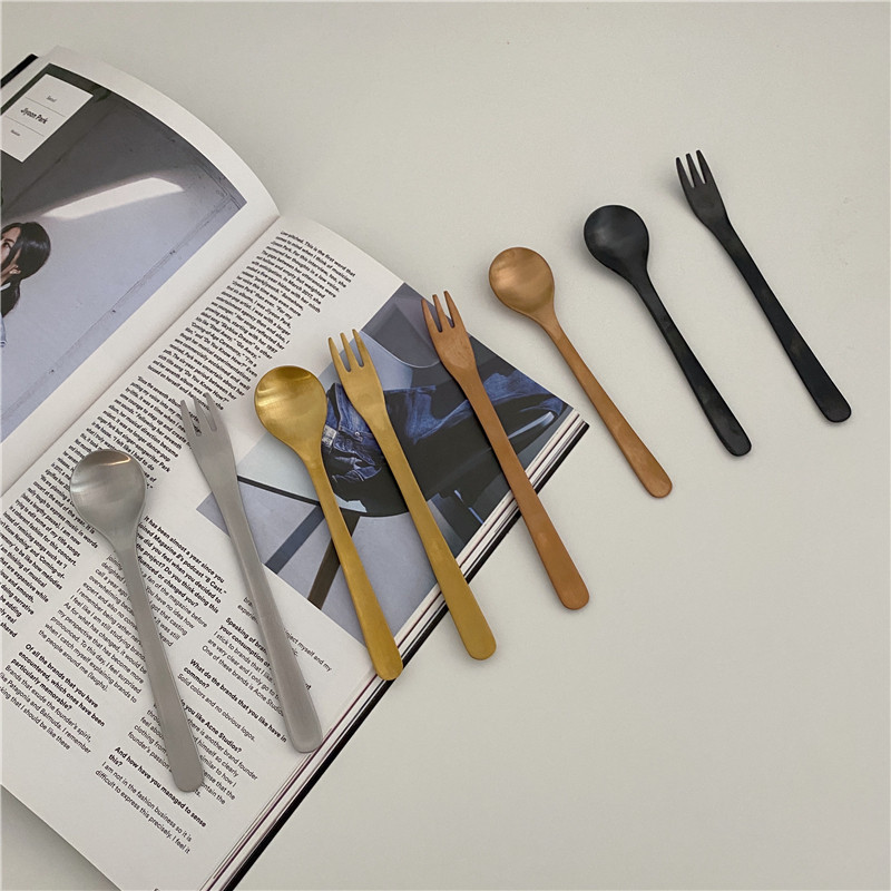 Po-ins Minimal 304 Stainless Steel Frosted Dessert Spoon Coffee Spoon Fruit Fork Mixing Spoon