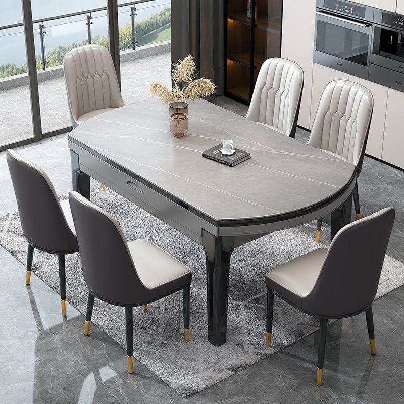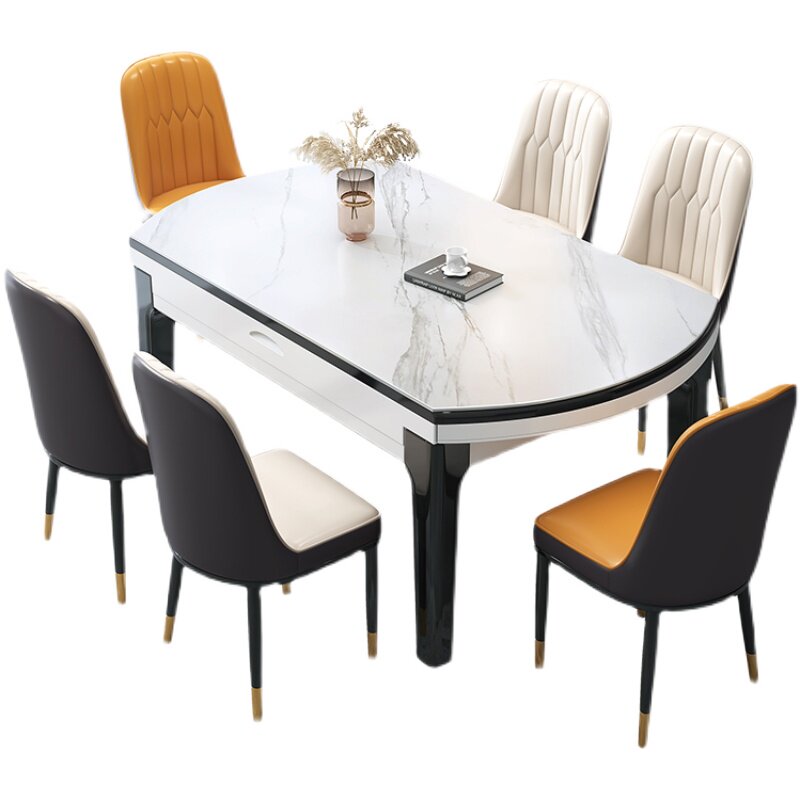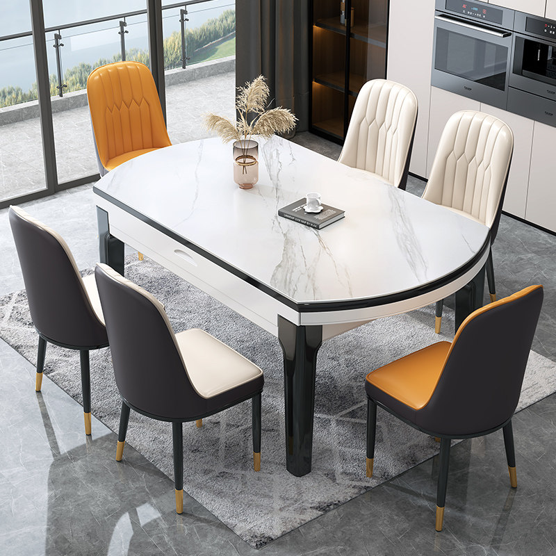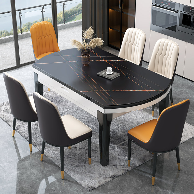 Light luxury rock plate dining table and chair combination Telescopic folding modern simple variable round household small household rectangular dining table