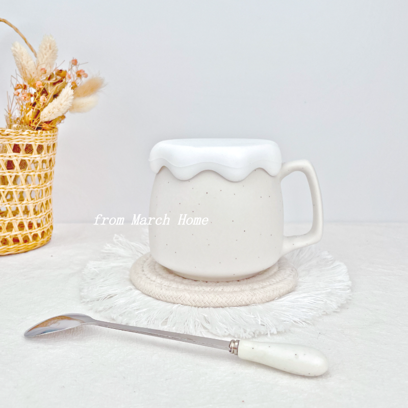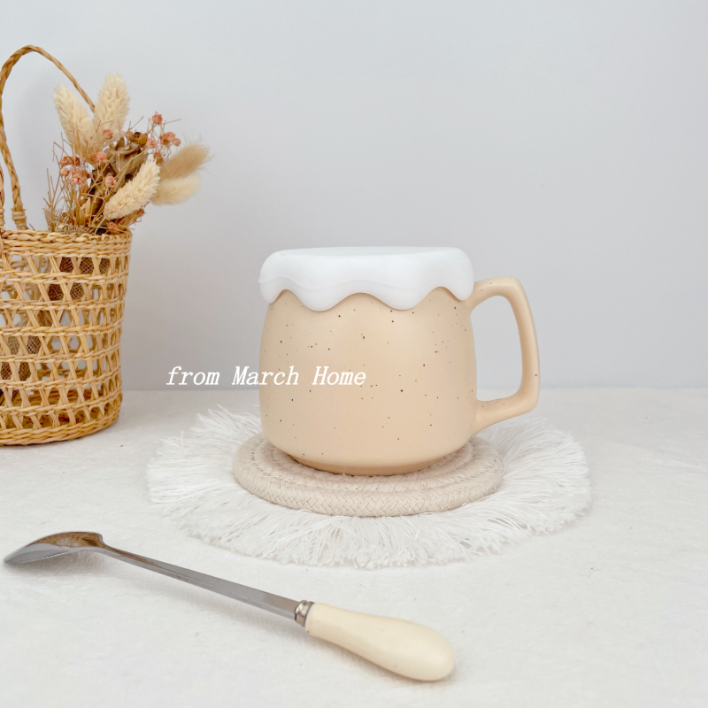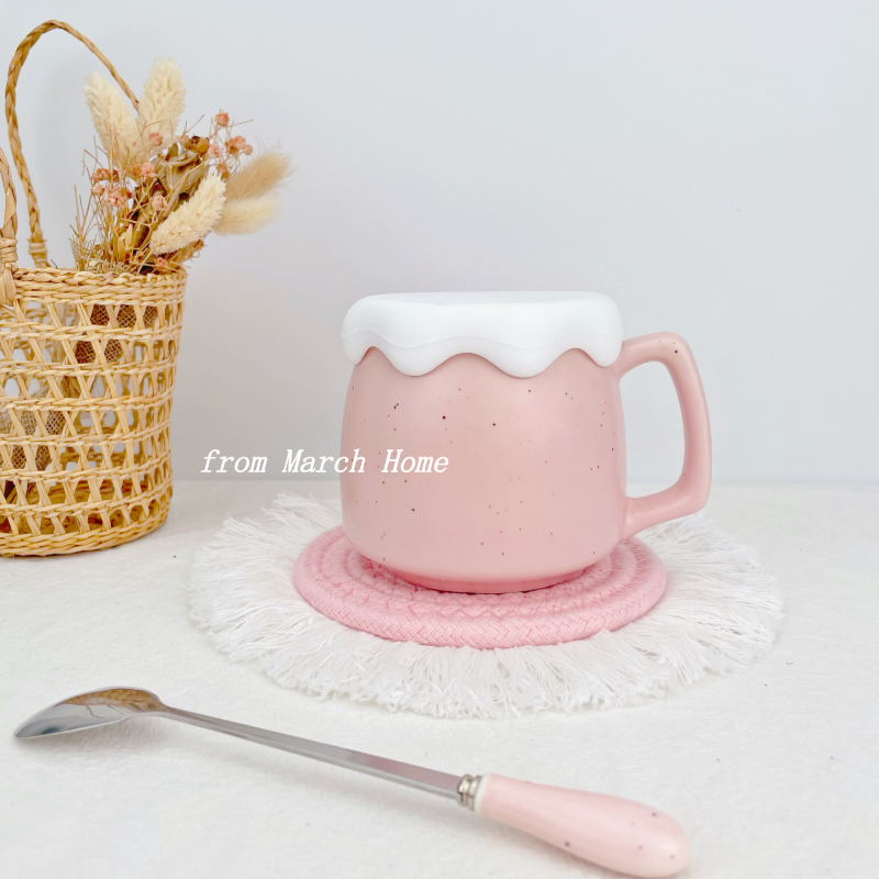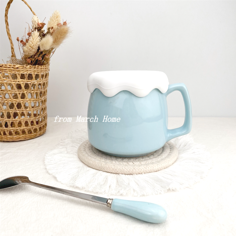 Tall-value cream cup girls lovely with lid spoon oats breakfast cup small fresh ceramic cup custom