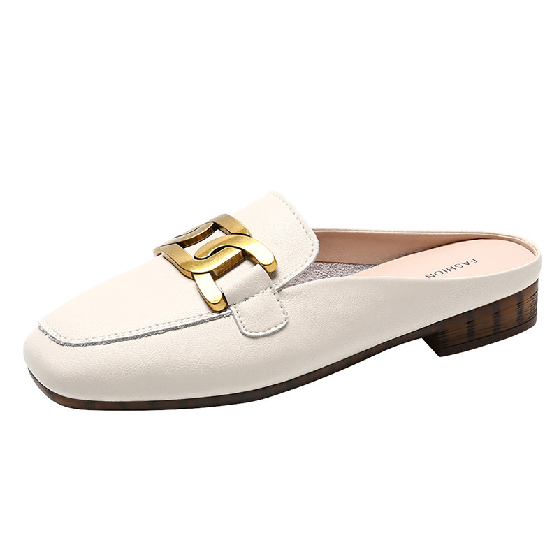 Baotou half slippers wore summer 2023 new leather bullish soft - solid tow heads Muller lazy shoes