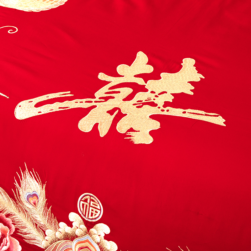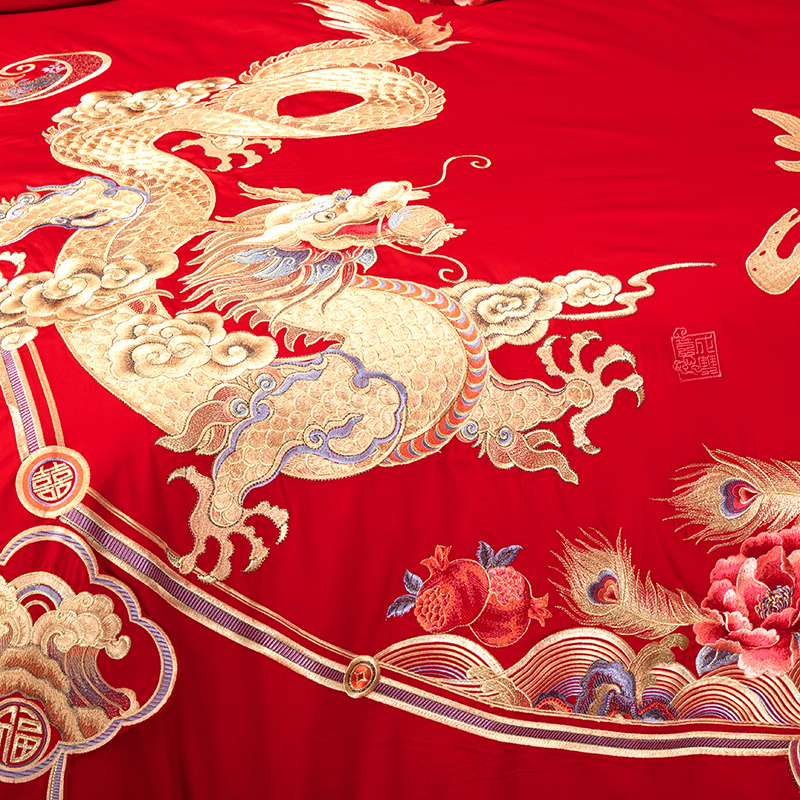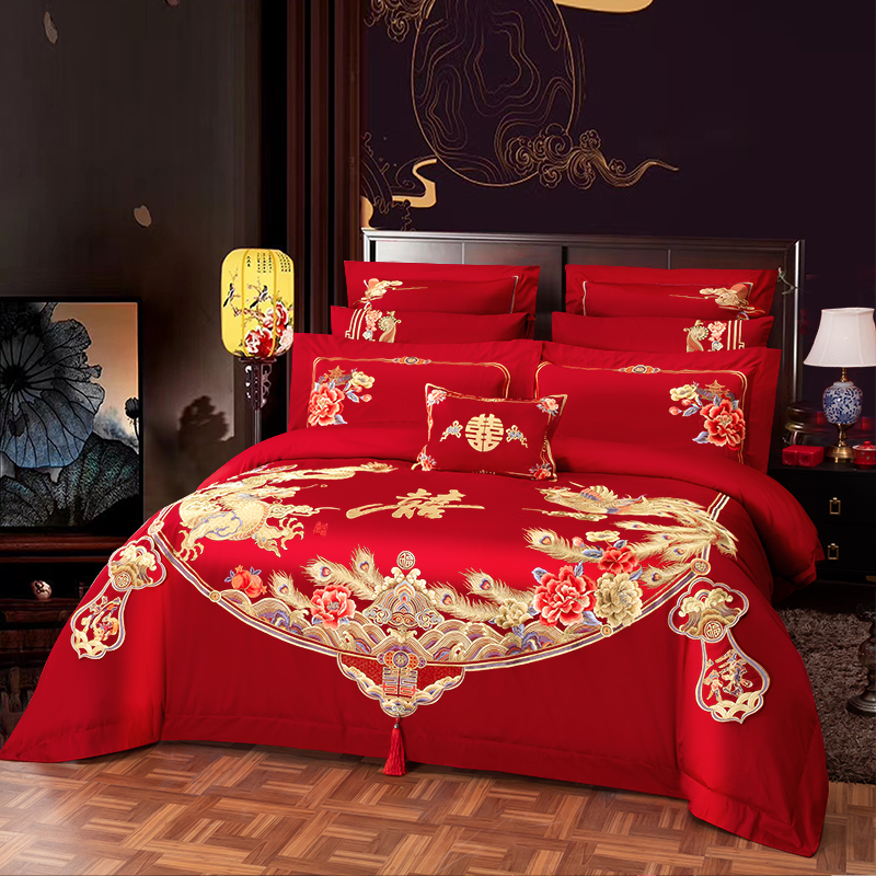 Wedding forty or sixty-piece set of 120 long-staple cotton big red dragon and phoenix quilt embroidered new house cotton wedding full set