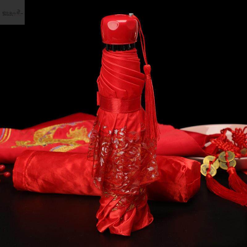 Red makeup ten miles pure red folding umbrella happy knot red folding umbrella hi plus hi red folding umbrella forever knot concentric red folding umbrella we got married red folding umbrella dragon and phoenix Chengxiang double-layer folding umbrella phoenix yufei double-layer