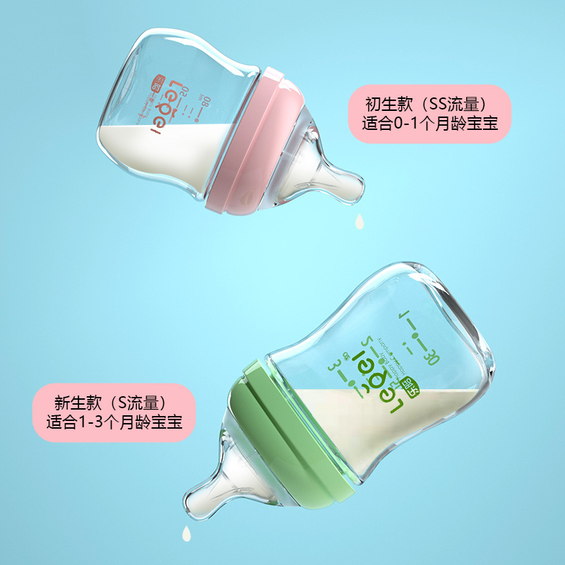 Newborn glass bottle wide flow of small flow of premature birth to drink water anti - choking anti - inflation gas 0 - 3 months children