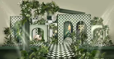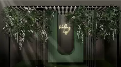 6 sets of blue-yellow color forest dark green new Chinese green hipster wedding hand-painted renderings PSD file wedding