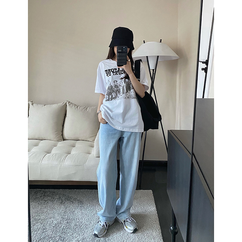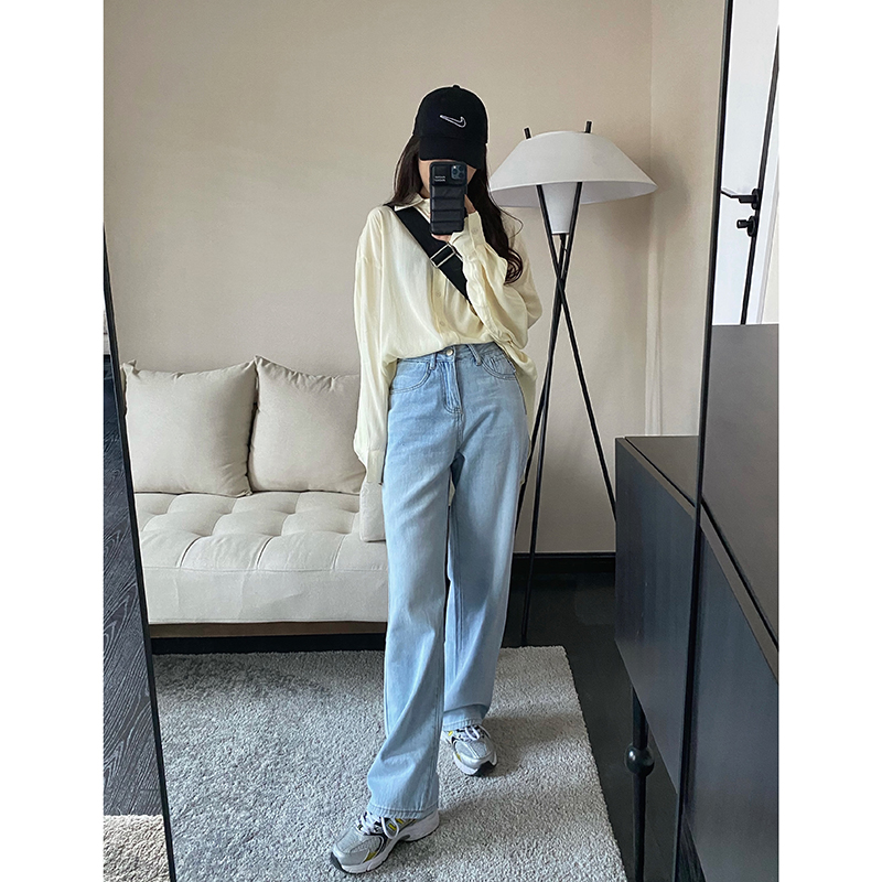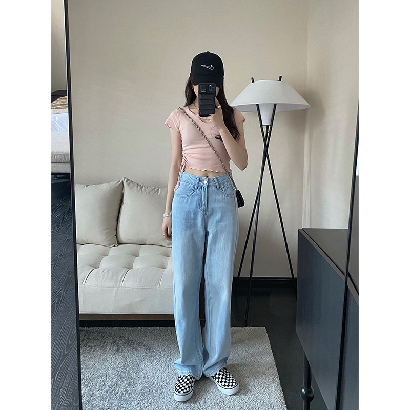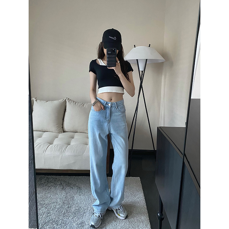 HHYEEE high waist jeans women's summer 2021 new Korean version of the vertical straight tube is thin and mopping loose wide-leg pants