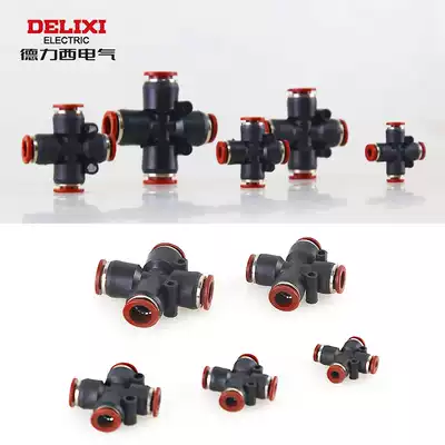 Delixi cross-type positive four-way connector air pipe quick quick plug pneumatic component accessories PZA4-6-8-10-12