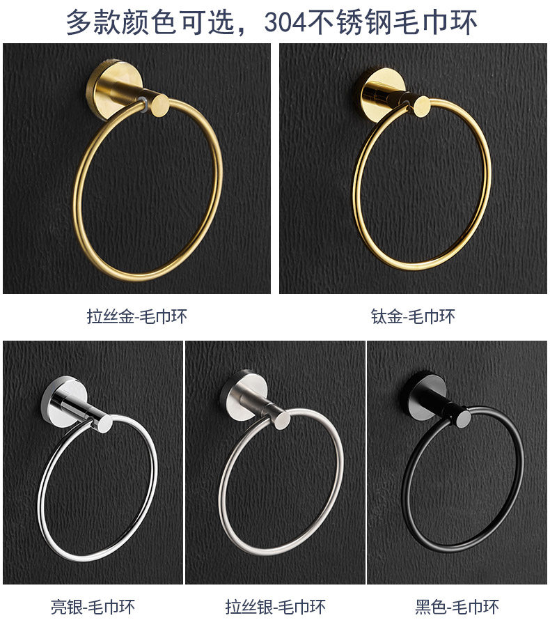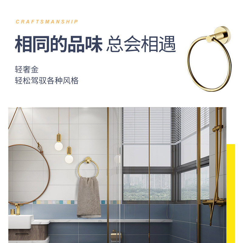 Light Extravagant Towel Ring Wire Drawing Golden Nordic Bathroom Wall-mounted Stainless Steel Round Hanging Towel Rack Free of perforated towels