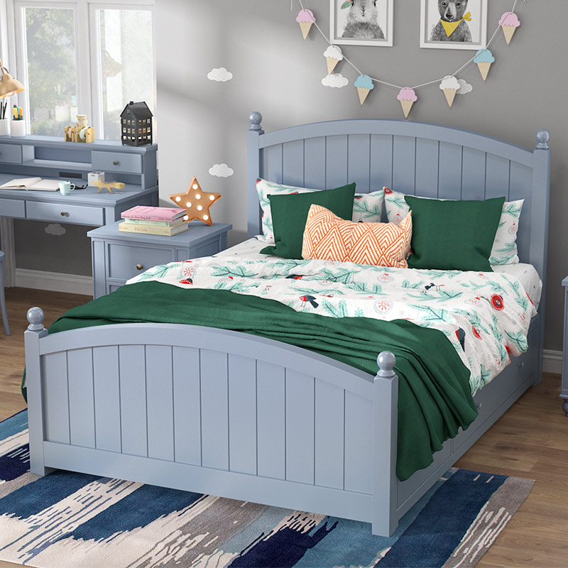 American in Child Solid Wood Bed Teen with Drawing Dormitory Male and Girl Princess Bed
