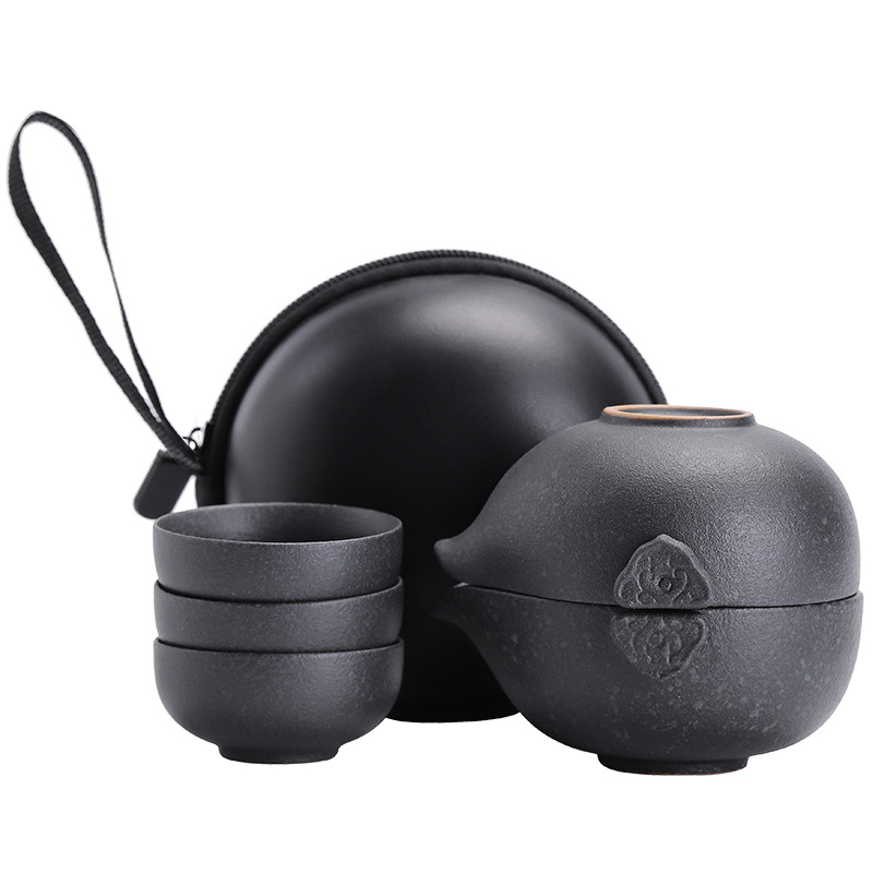 Outdoor camping fast guest Cup Anti-hot ceramics a pot of three cups portable travel kung fu tea set set office tea