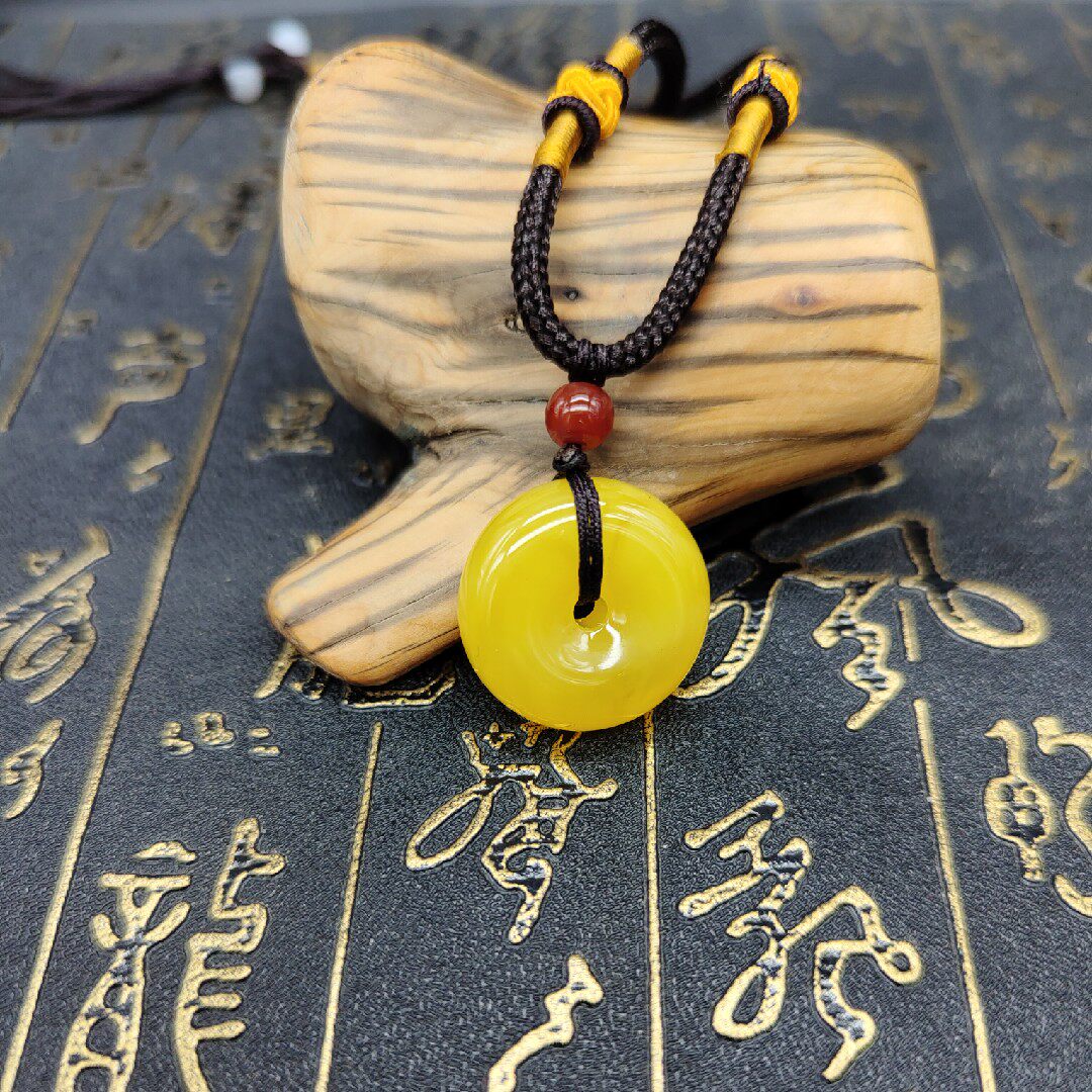 Russian white flower beeswax safety buckle pendant Amber honey chicken oil yellow necklace jewelry Couple neck pendant