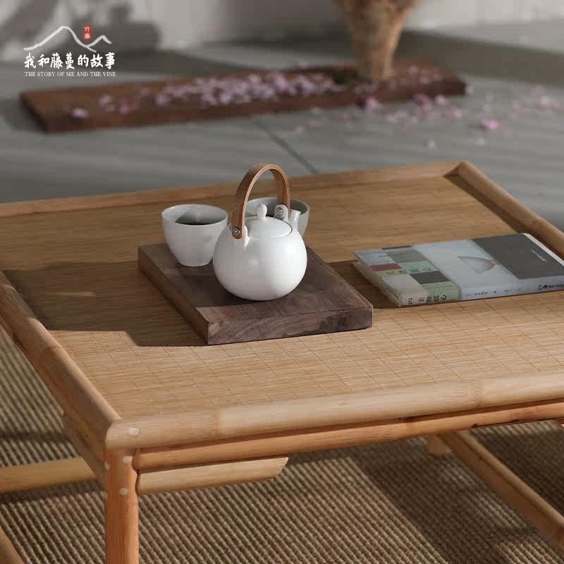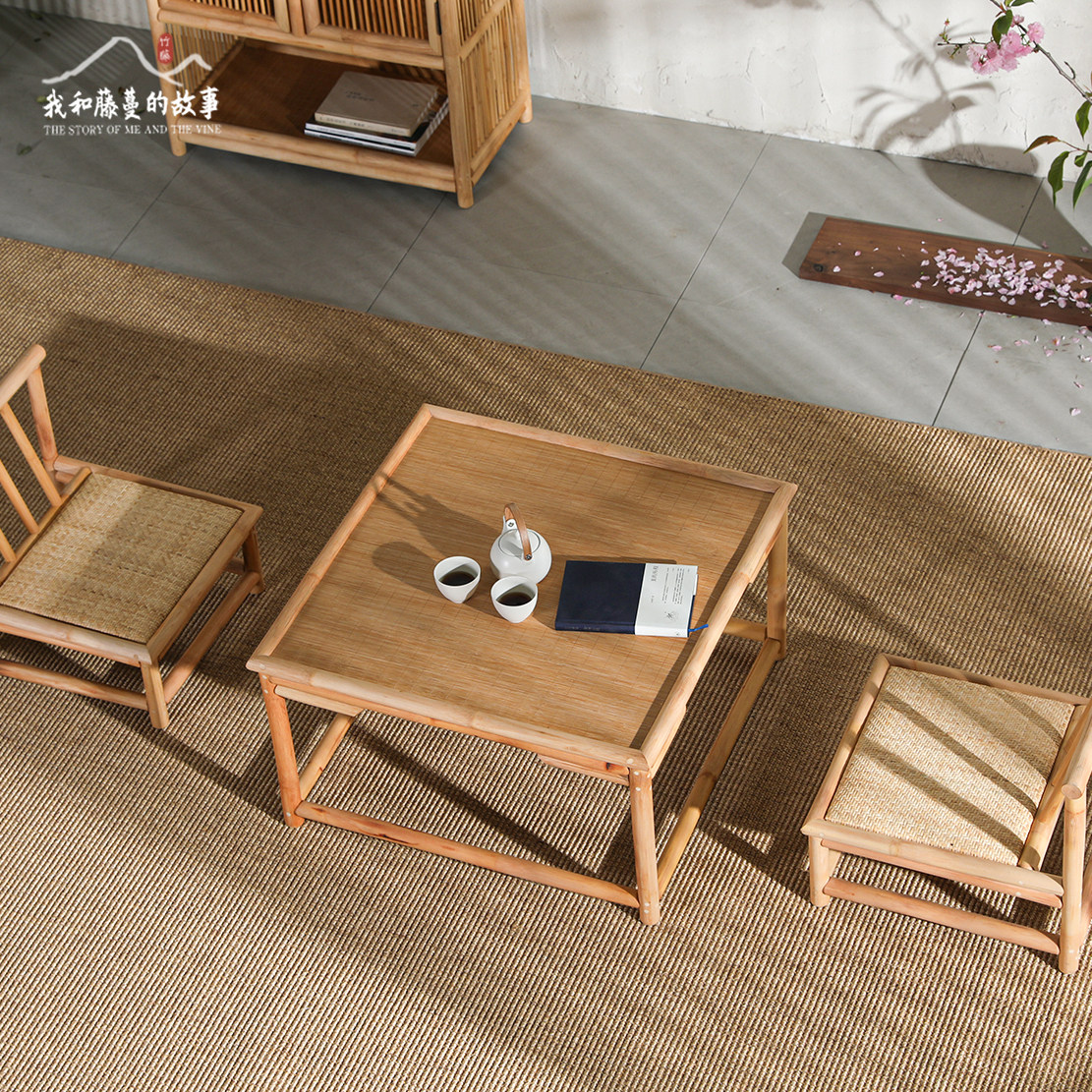 Bamboo and rattan Chinese square tatami table Zen simple small tea table balcony low table low table table table chair package