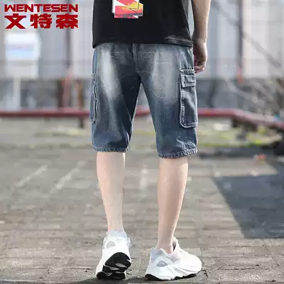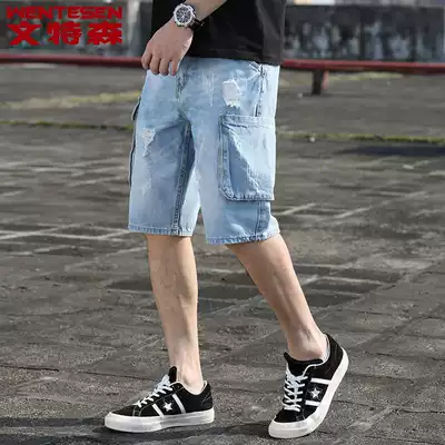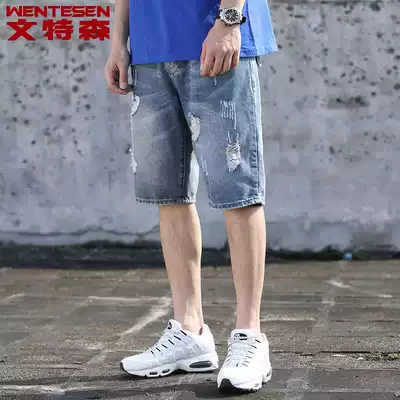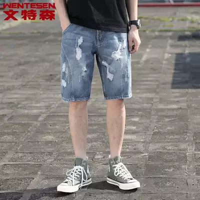 Denim shorts men's loose leisure summer new Korean trend hole five-point pants Men's Youth Tide brand five-point pants