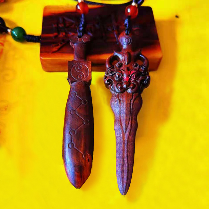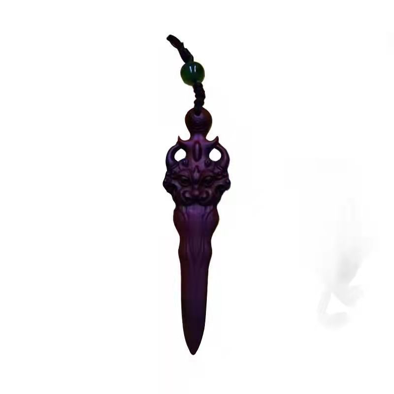 Natural Lightning Strike Date Wood Peach Wood Sword Seven Star Beast Face Lion Bite Sword Pendant Pure Hand Engraving Dauphin Accessories Accessories