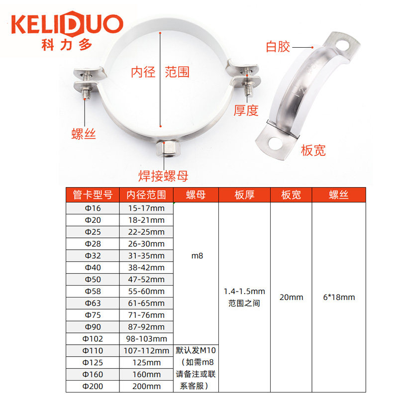 Elevator 304 stainless steel pipe code pipe hoop 75PVC pipe card 110 clamp pipe clamp hanging code 25PPR pipe hoop