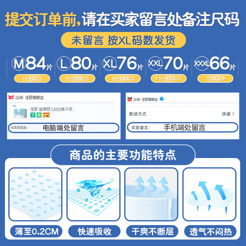 Jiaying pull-up pants M L XL XXL code ultra-thin breathable male and female baby baby diapers non-diapers diapers