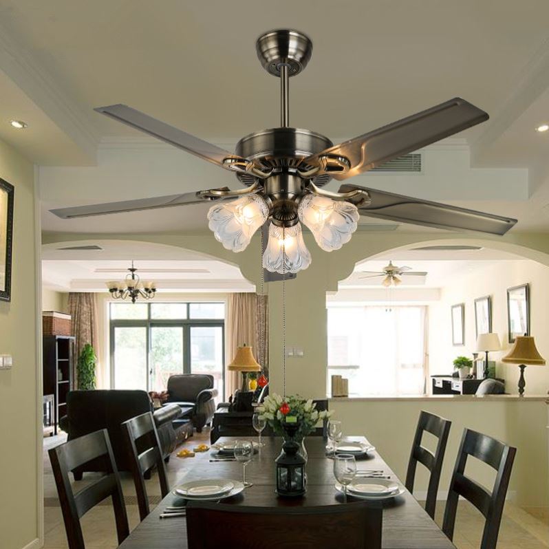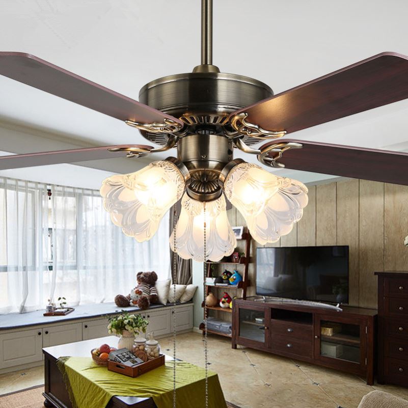 European retro fan chandelier restaurant ceiling fan lamp ceiling integrated electric fan household wood leaf mute antique fan lamp