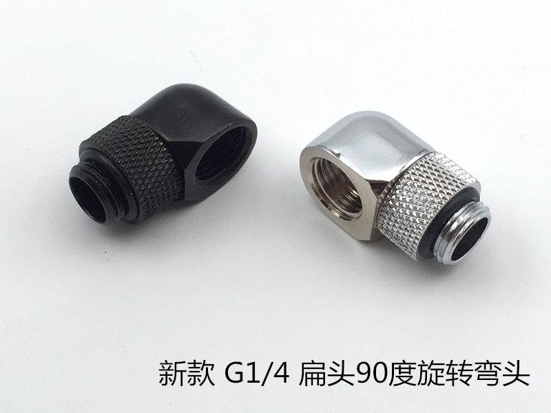 Flat head computer water cooling new flat rotation 90-degree elbow can rotate 360-degree right angle rotary bending silver black