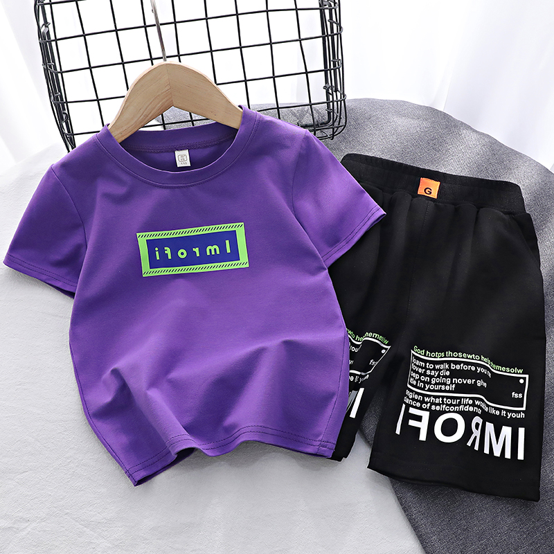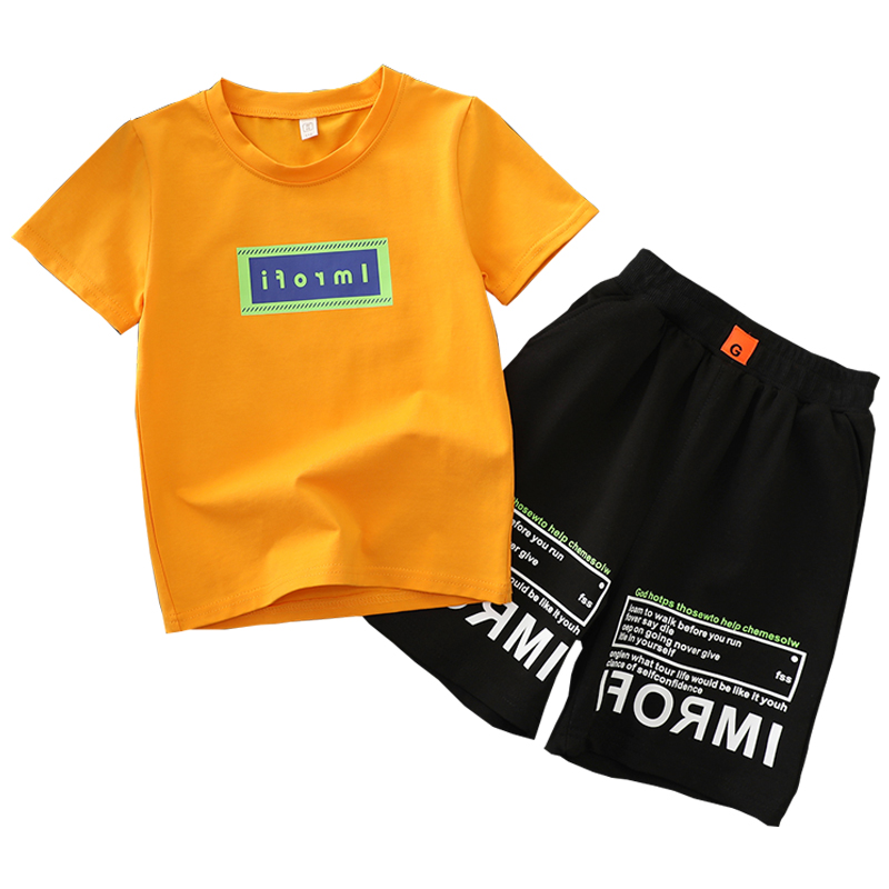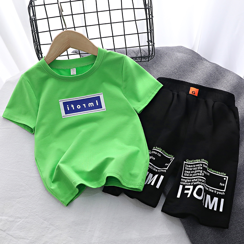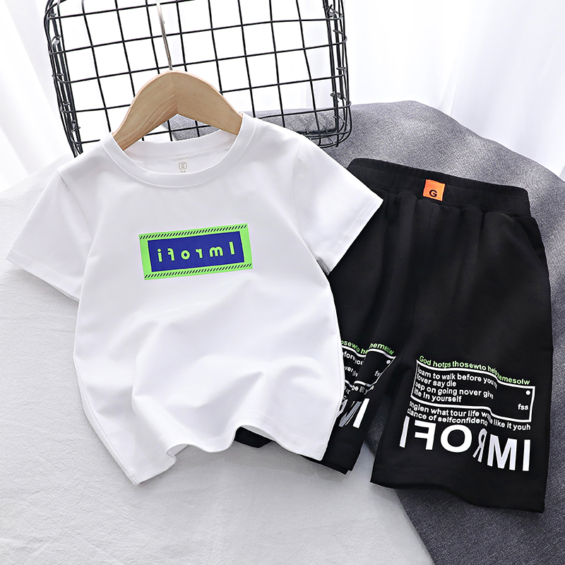 Boys' sports suits, children's clothing, thin, medium and large children's cotton short-sleeved shorts, two-piece suits, children's summer clothing, girls' suits, tide