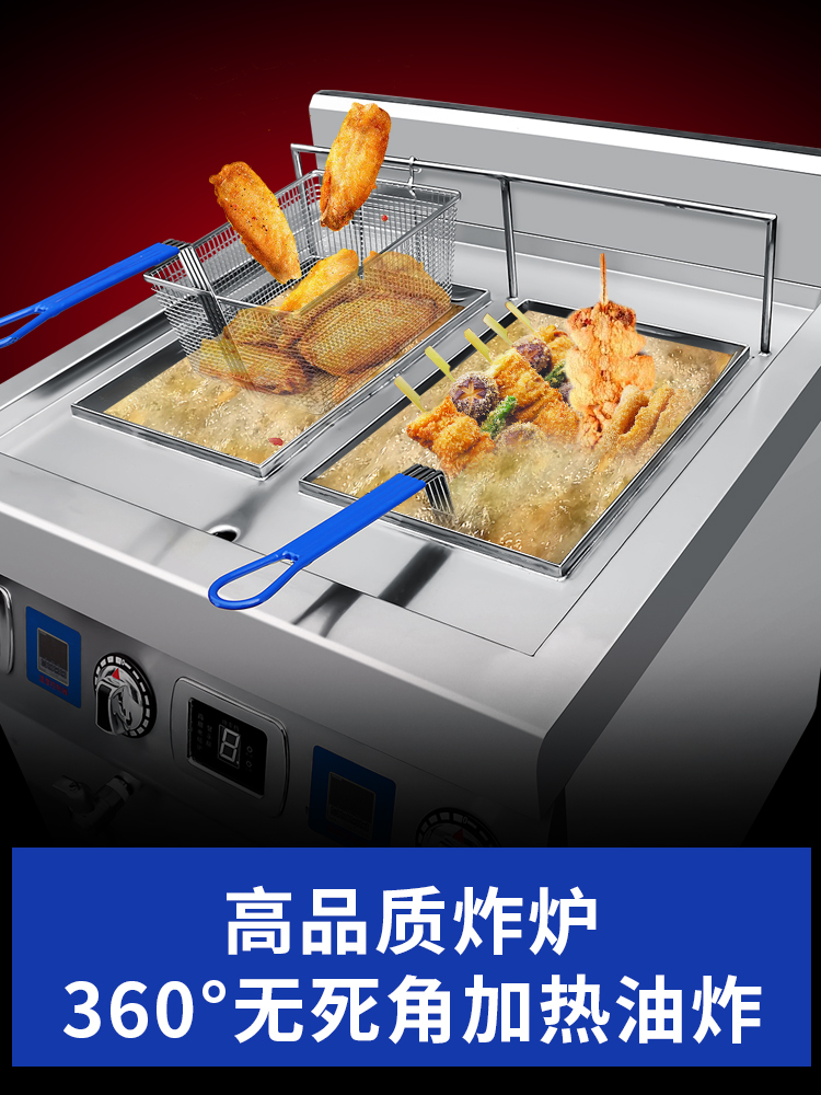 Gallop Electric Bomb Furnace Commercial Large Capacity Vertical Commercial Fried Chicken Fries Electromagnetic Constant temperature Equipment Double-cylinder Electric Oil Tanker-Taobao