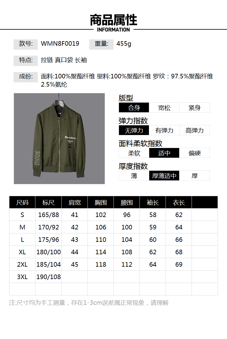 Clearance Buy #9 Charm High-end Men's WMN8F0019 Letter Embroidered Comfort Jacket Coat 2021 Spring