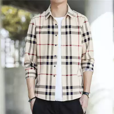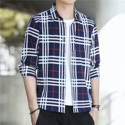 Spring and summer clothes 2021 new men's long-sleeved shirt plaid Korean version of the trend slim-fitting handsome all-match youth clothes