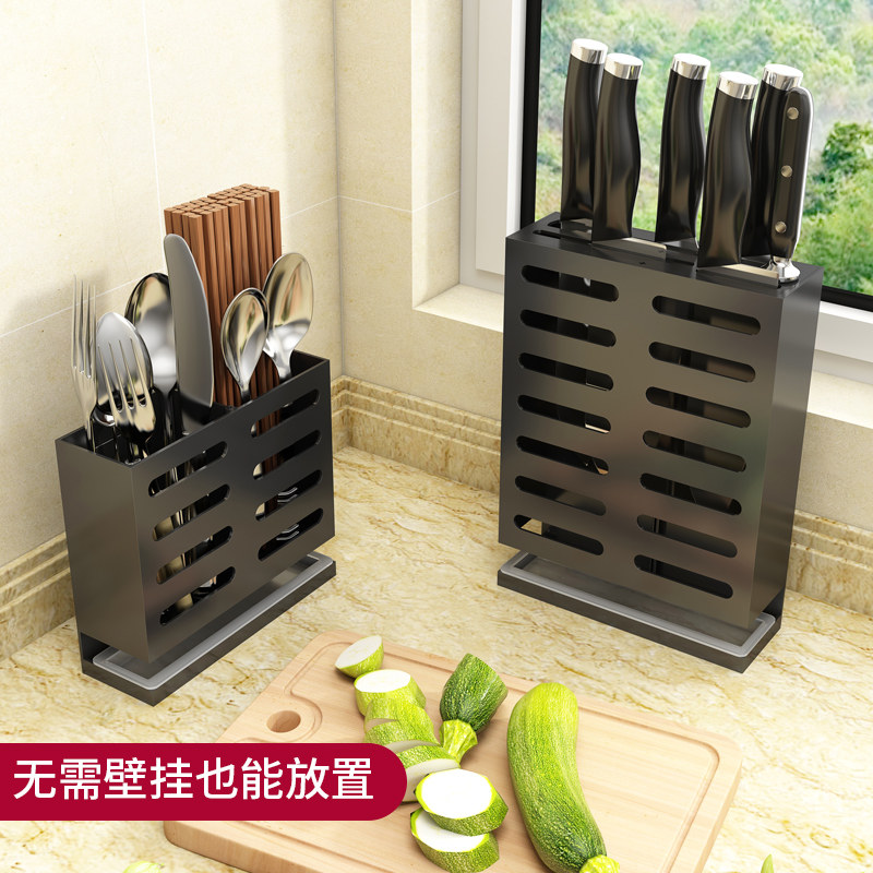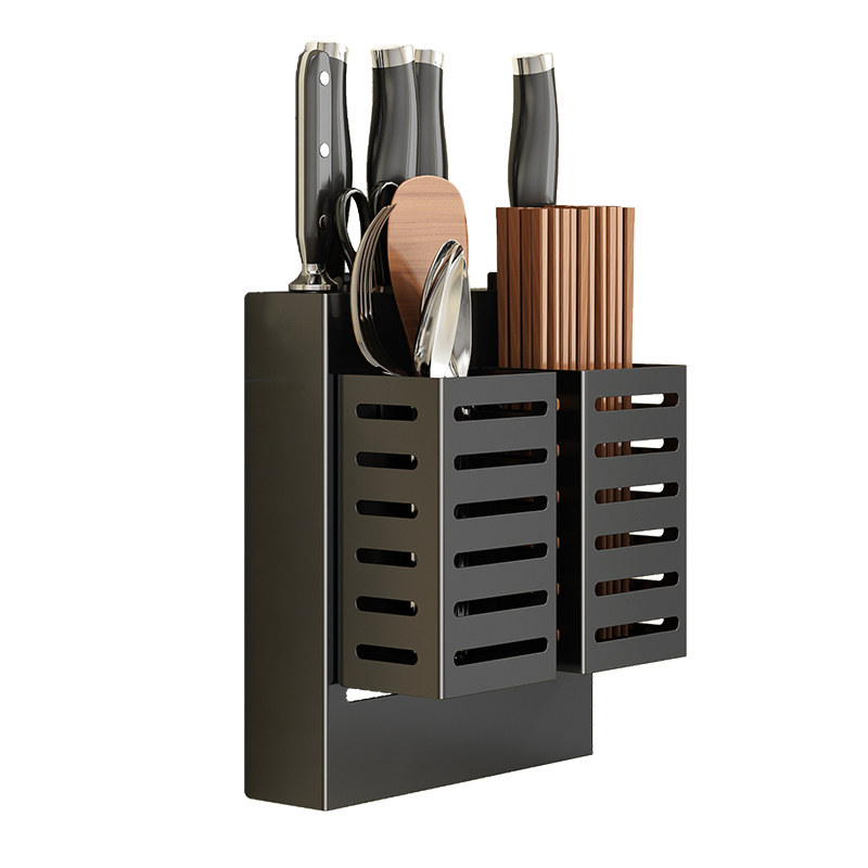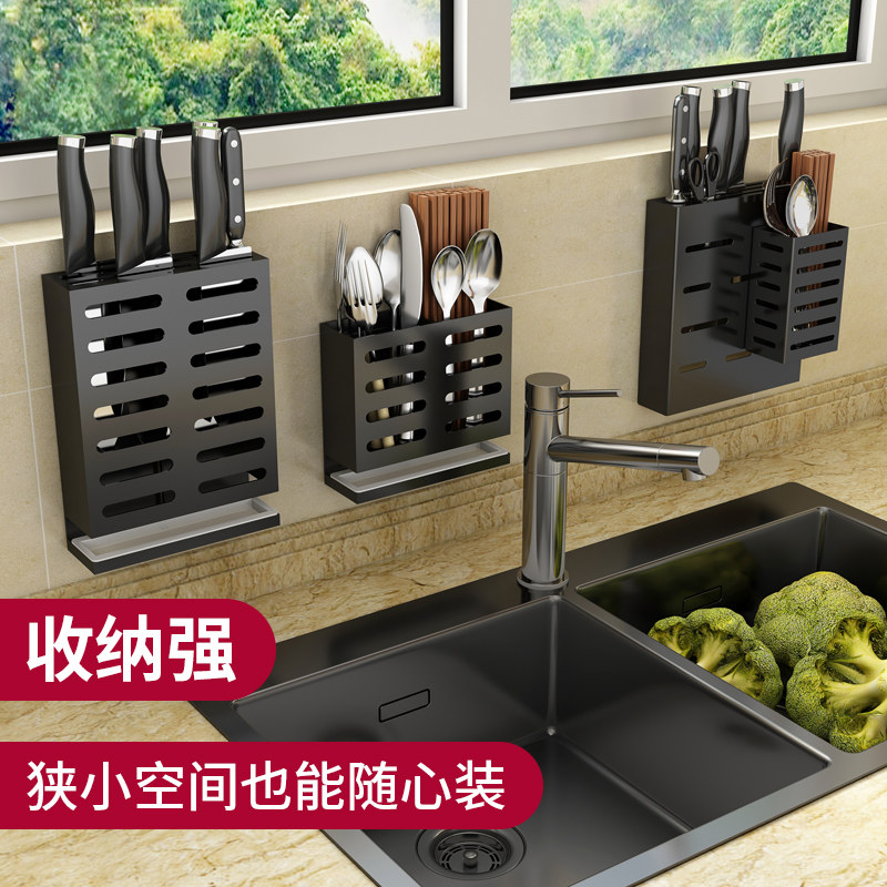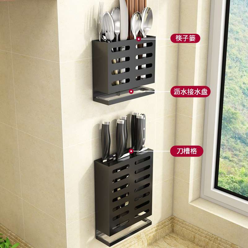 Kitchen knife rack Wall-mounted kitchen knife holder with household punch-free multi-functional small chopstick cage integrated storage box
