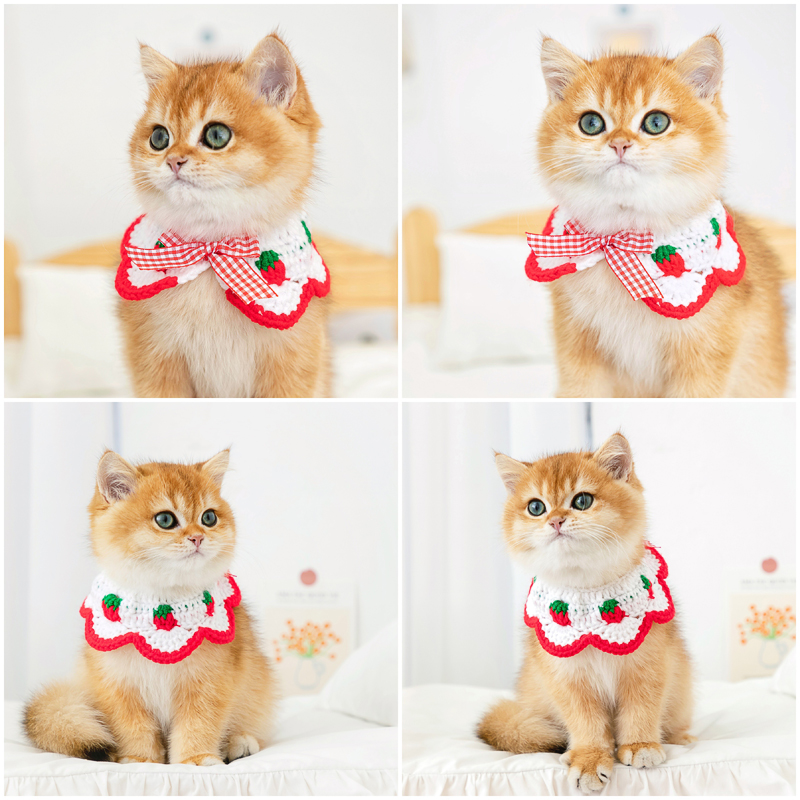 Cute Strawberry Butterfly Knot Kitty Neckline Handwoven Knit Neck Ring Pet Trinkets Kitty Cat Enclosure Neck