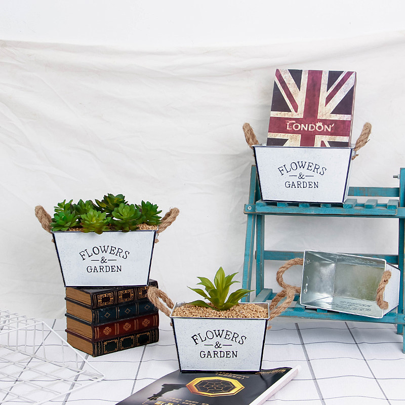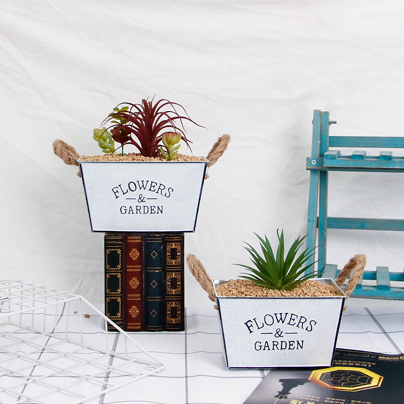 Creative iron hemp rope shape wrought iron retro simple white old flower pot green plant succulent flower potted plant
