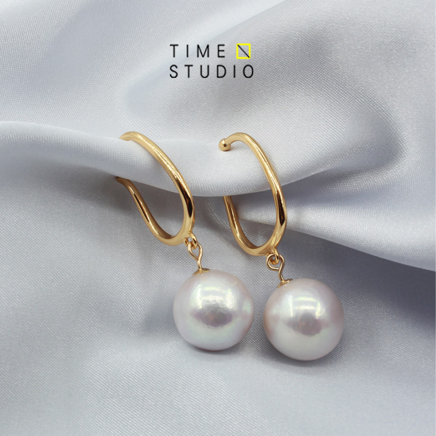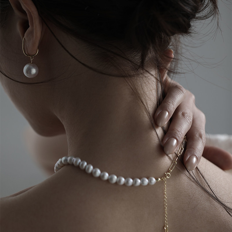 Baroque pearl ear buttons against baroque pearl earbuckles
