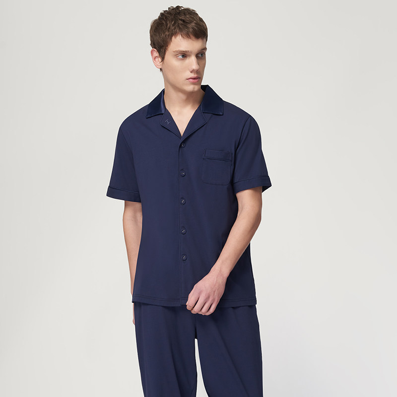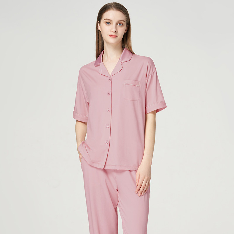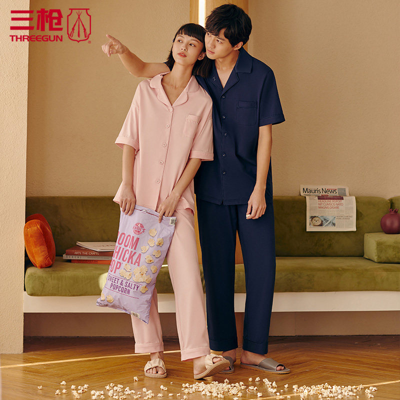 Three guns home wear suit women's pajamas men's casual living clothes cool stretch cotton short-sleeved trousers women 81846