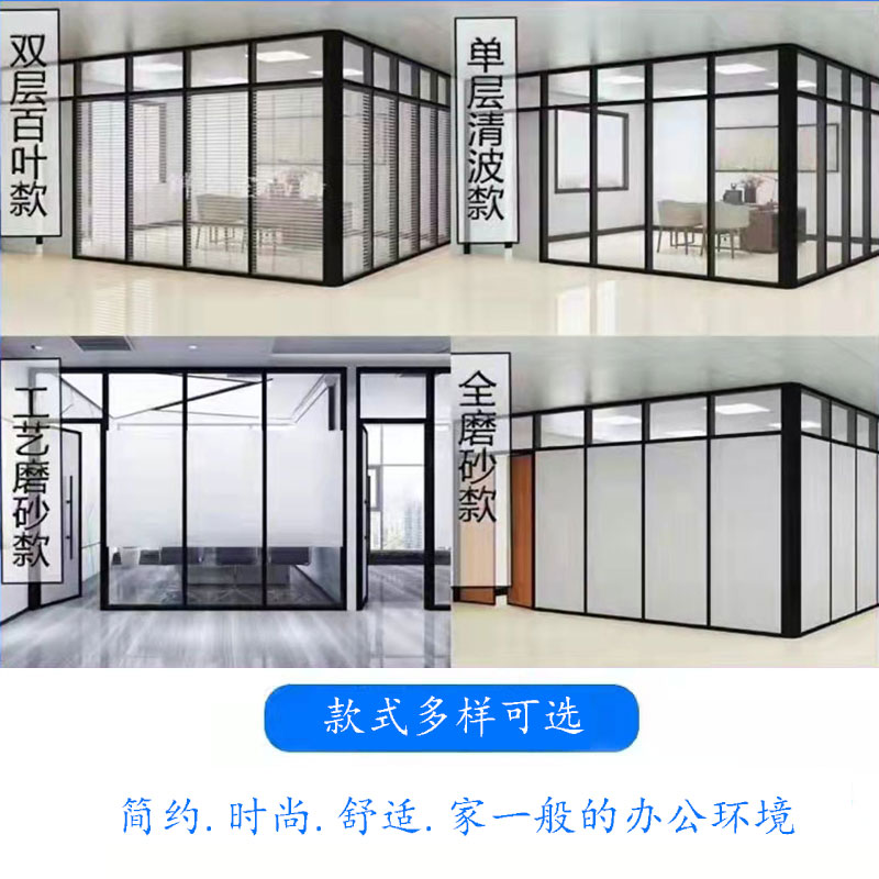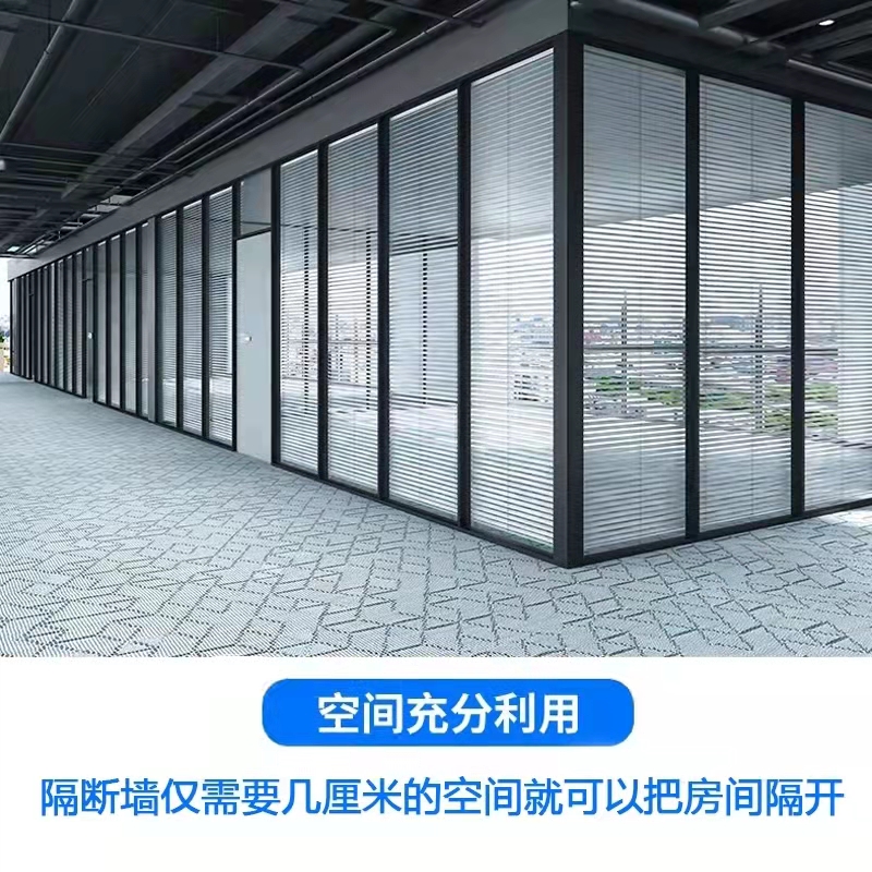 Ningbo office glass partition wall Cixi Yuyao factory sound insulation double-layer tempered glass built-in louver high partition