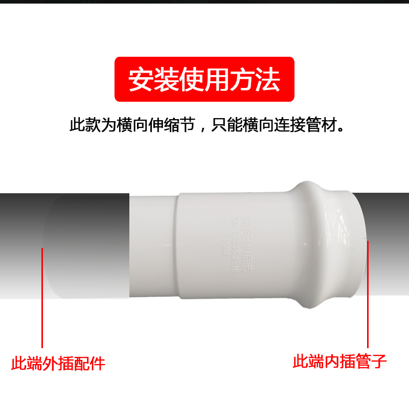 PVC110 transverse extension section pipe drain pipe water pipe direct sewer pipe active joint lengthened plastic fitting thick