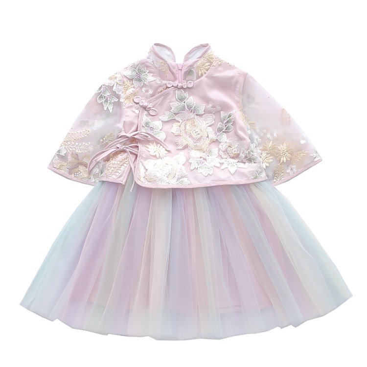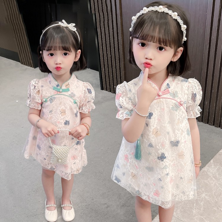 Girls' qipao Summer Children's China Wind Dress Superfairy 1-2-3-year-old woman Baograbbed week-old gown Dang dress