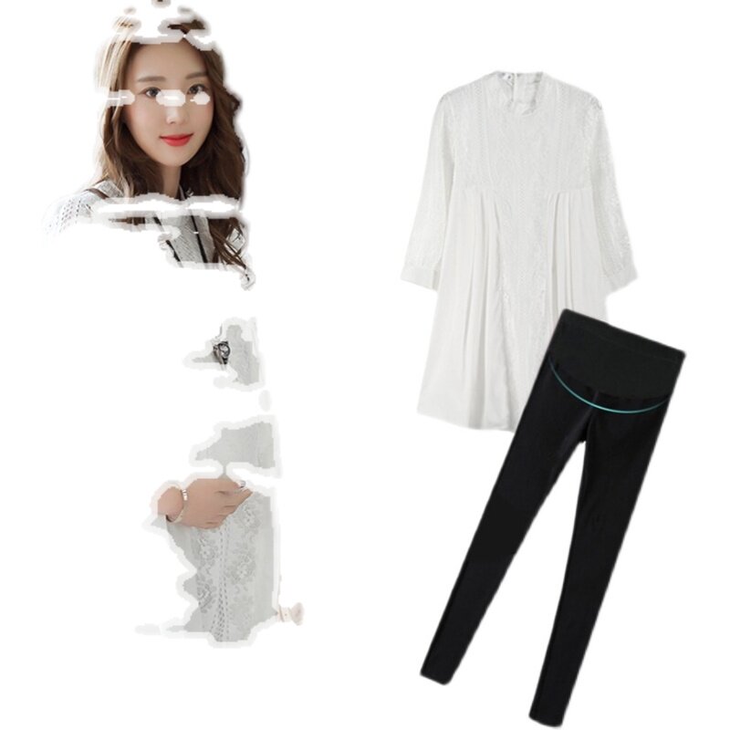 Pregnant women dress new shade does not show lace shirt pure coloured collar summer breathable