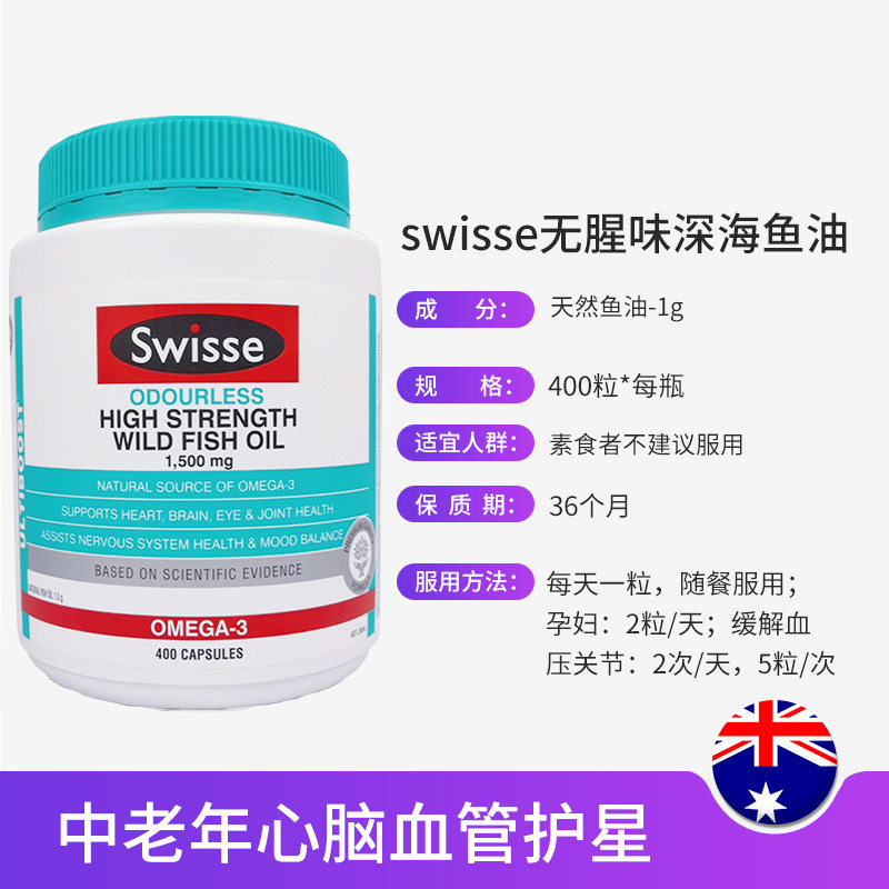 Australian Swisse deep-sea fish oil softgel no fishy smell 1500mg400 capsules omega3 middle-aged and elderly Swisse
