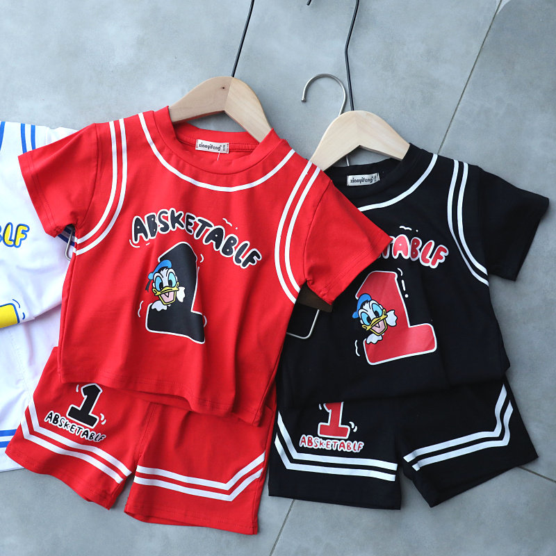 Clear Barn Style Baby Sports Suit Boy Short Sleeve Shorts Two Sets Children Casual Basketball Suit 1282