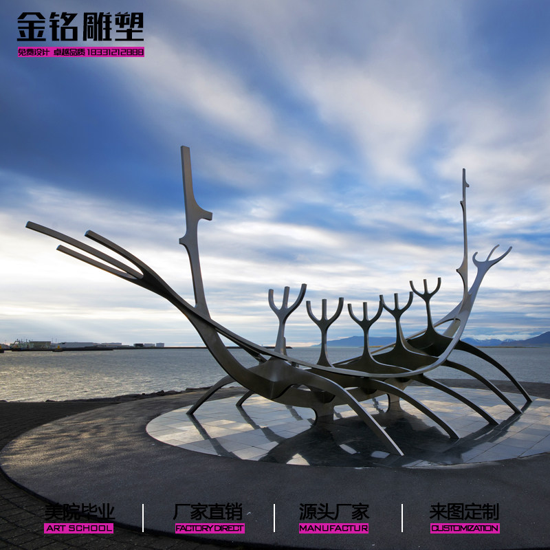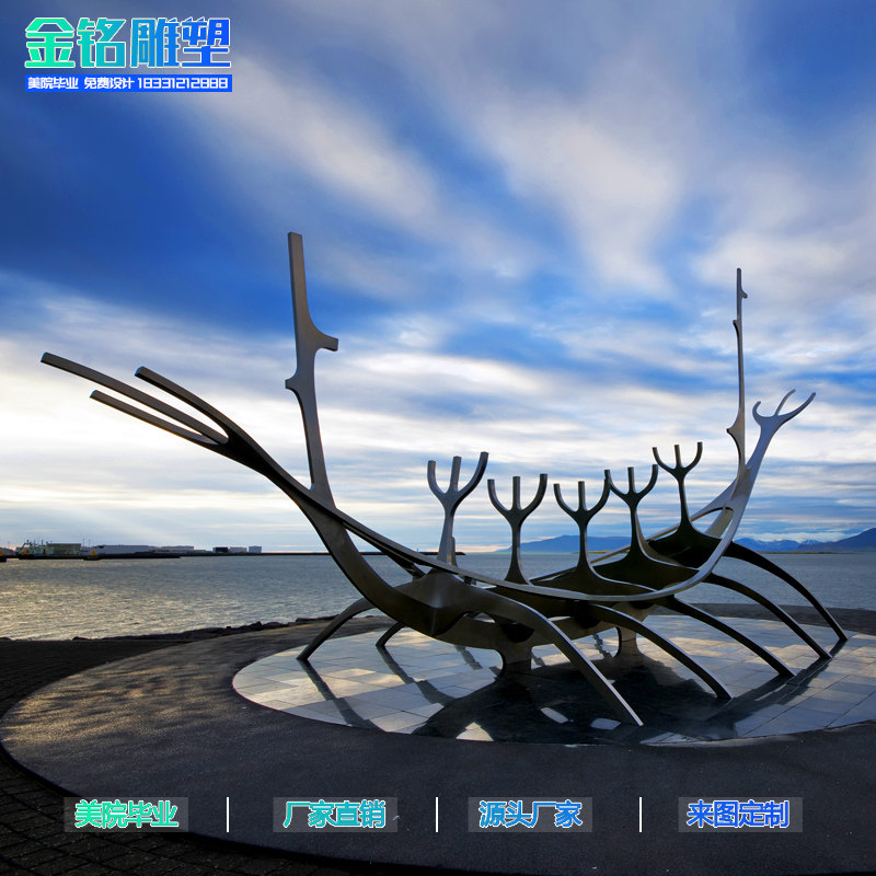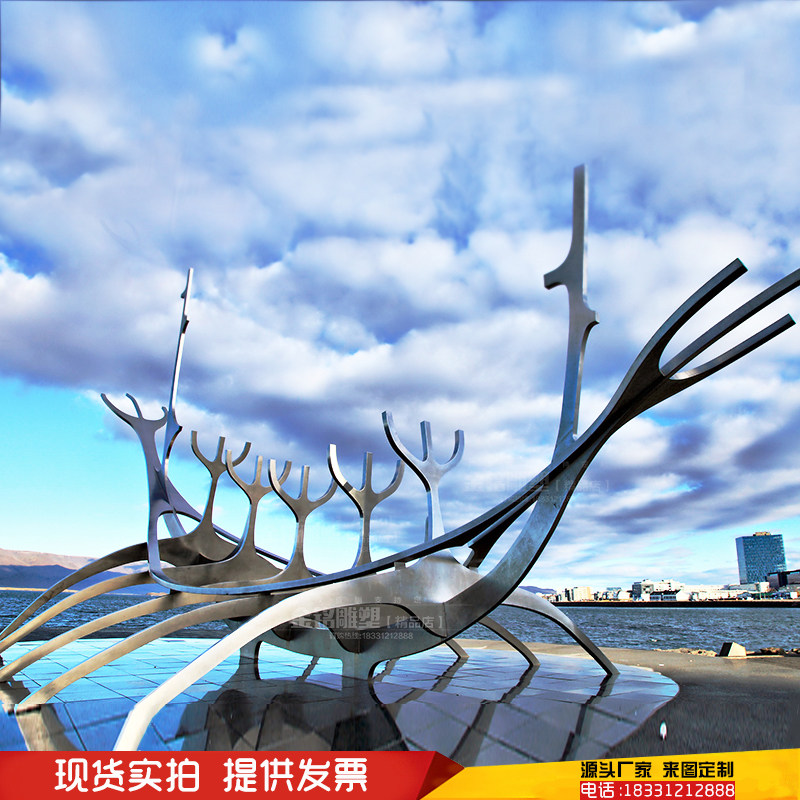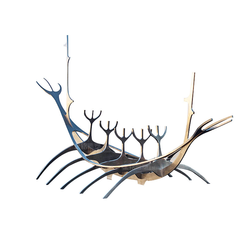 Outdoor stainless steel abstract boat sculpture custom water water curtain boat spray ring garden landscape landing large ornaments