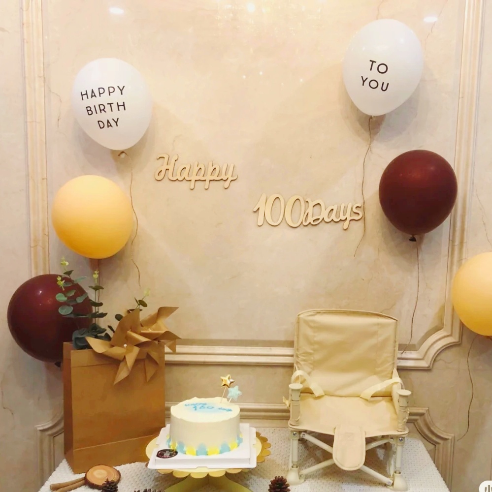 Netred over the baby's hundred birthday decoration scene arrangement in wind creative party atmosphere taking picture props simple