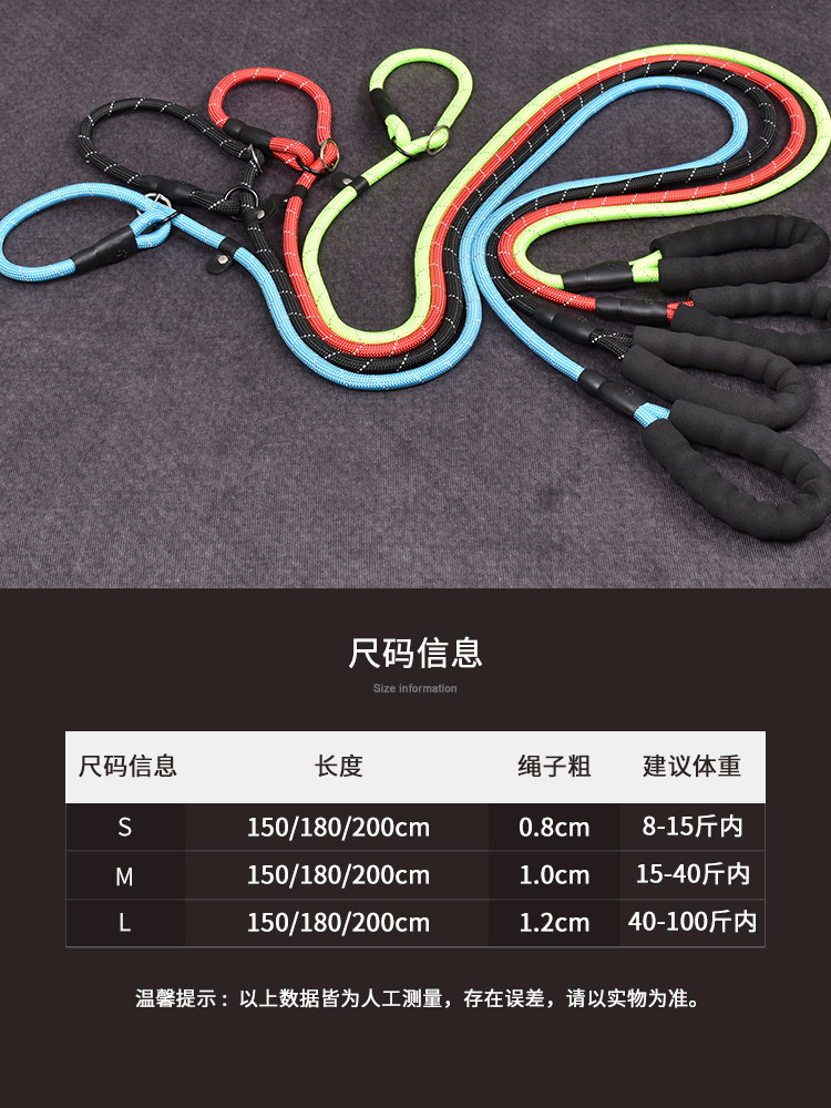 S (rope coarse 0 suitable 8cm 8-15 catty dogs) M (rope coarse 1 0cm suitable 15 15 -40 catty) L (rope coarse 1 2cm suitable for 40-10