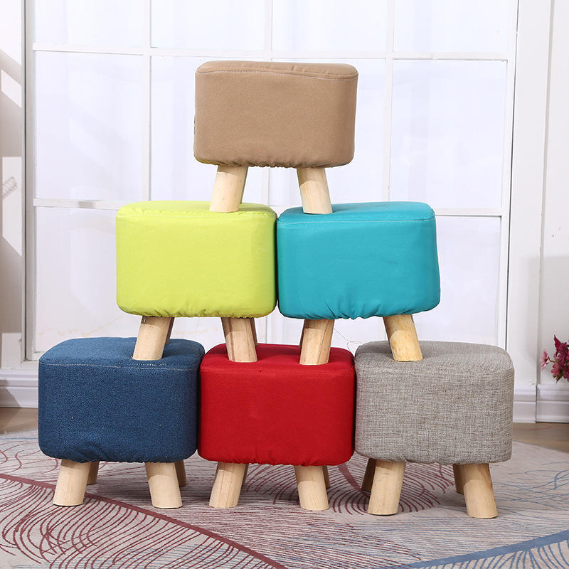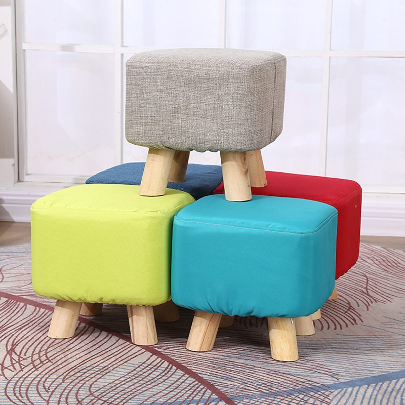 Solid Wood Changing Bench Cloth Art square stool Home doorway Shoes Stool Tea Table Bench Wear stool Stool Short Stool Pure Color Stool