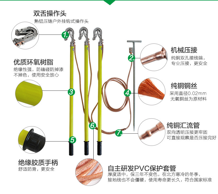 Outdoor high-pressure grounding grounding wire ground stick suit 10KV outdoor line carrying type 25 square-connected grounding wire soft copper wire