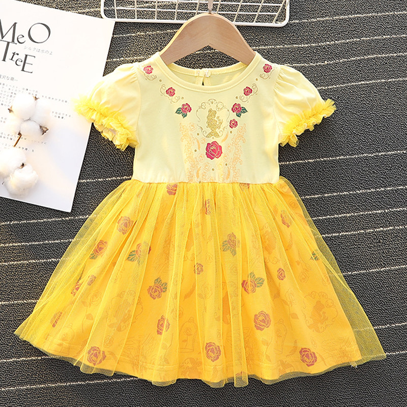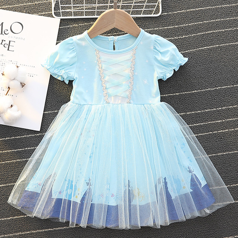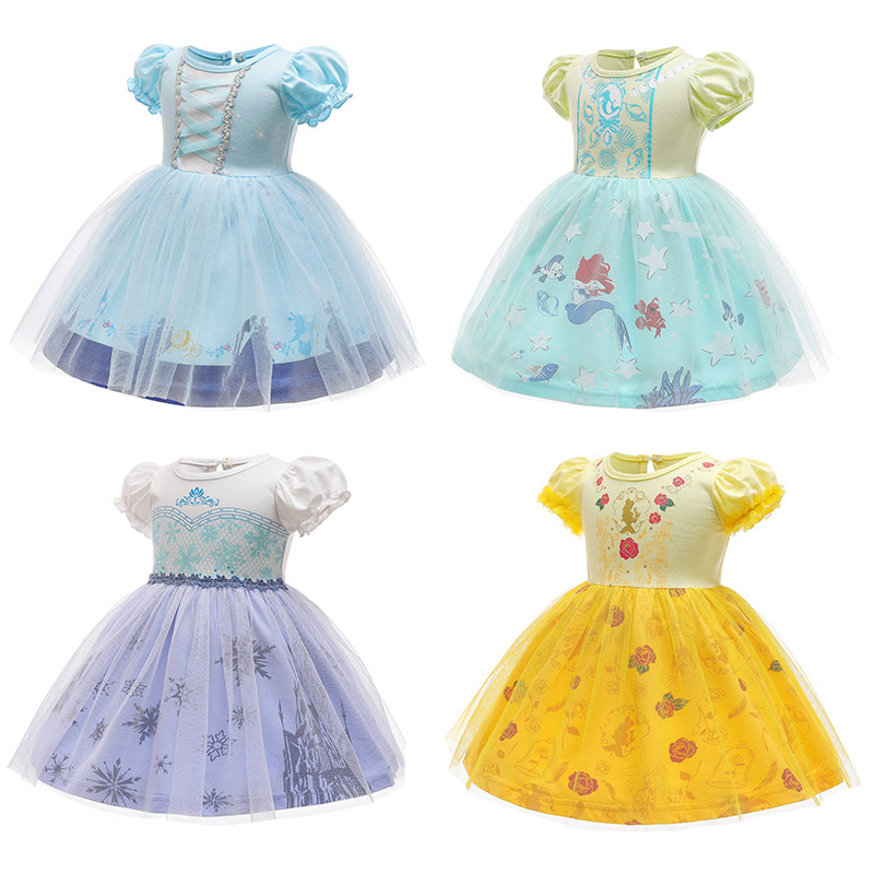 Foreign trade pure cotton summer girl baby Frozen Aisha Mermaid Cinderella Belle Princess dress