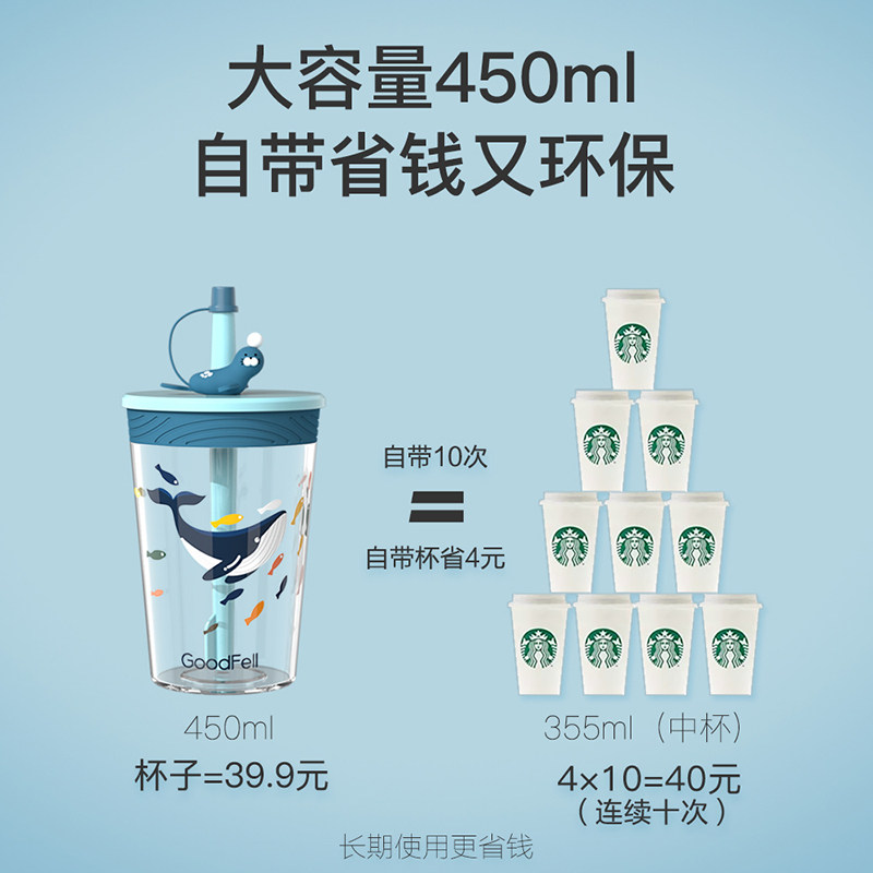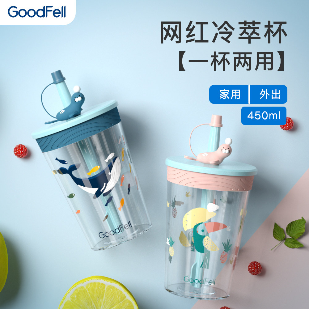 Gnon High Face Value Water Glass Female Summer Net Red With Large Capacity Tritan Straw Cups Cute Cuddling Bag Portable