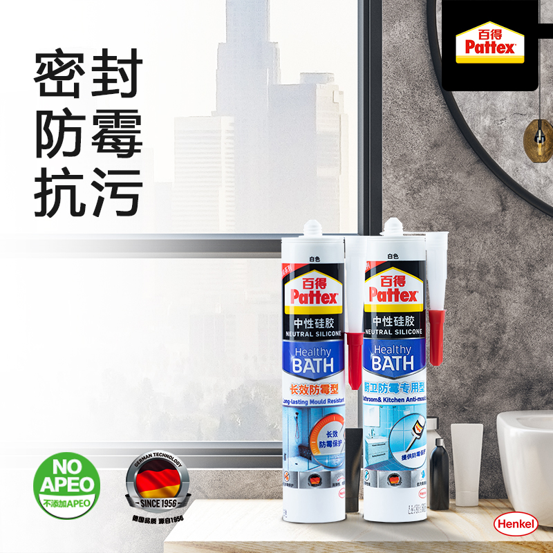 Henkel Baide glass glue long-lasting waterproof mildew kitchen and bathroom high temperature resistant strong silicone water toilet sealing edge 1 bottle