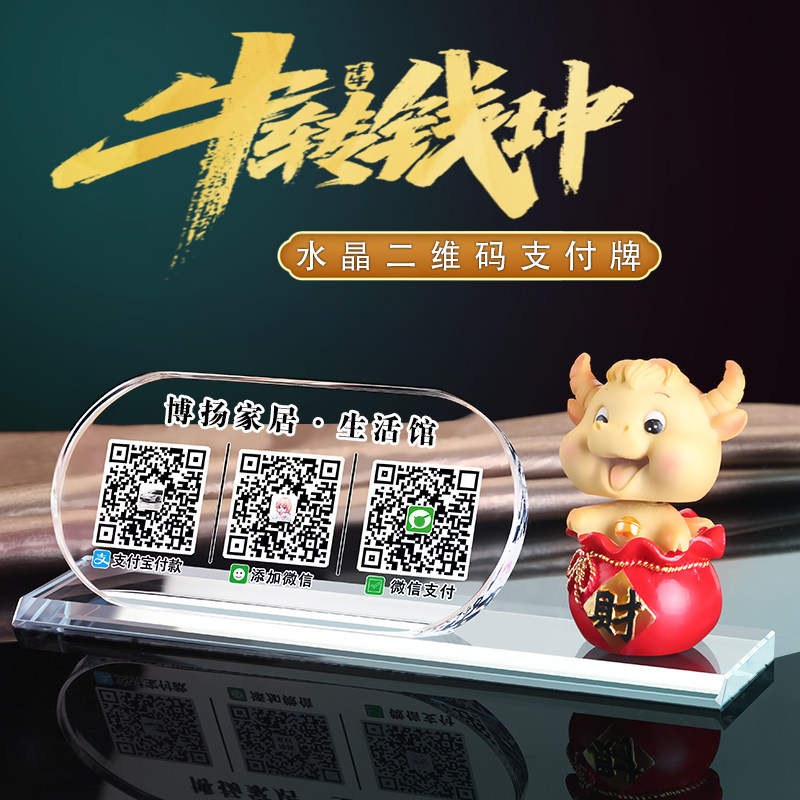 Collection Two Dimensional Code Payment Card Display Card Collection Money Code Crystal Two Dimensional Code Table Card Recruiting cat two-dimensional code collection voice report WeChat account Alipay collection Silver board Pendulum Terrace customized to be creative