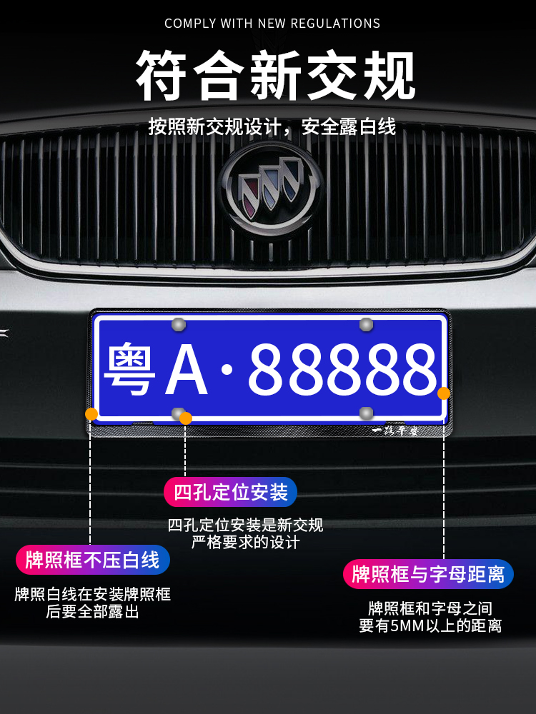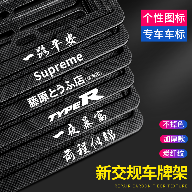 Personalized license plate frame New traffic regulation car license plate frame Mercedes Benz BMW carbon fiber license plate rack universal new energy plate holder