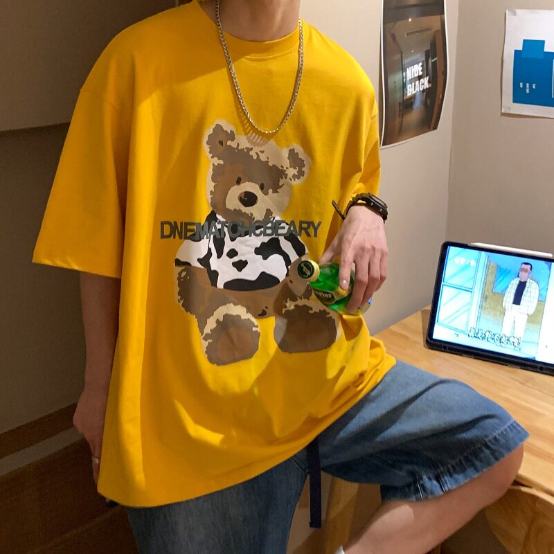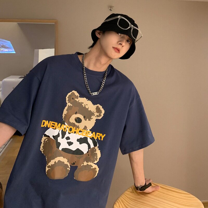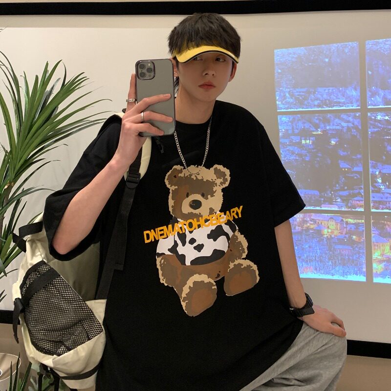 The barn stone a tree white bear short sleeve t shirt men summer 2023 loose print couple clothes tide