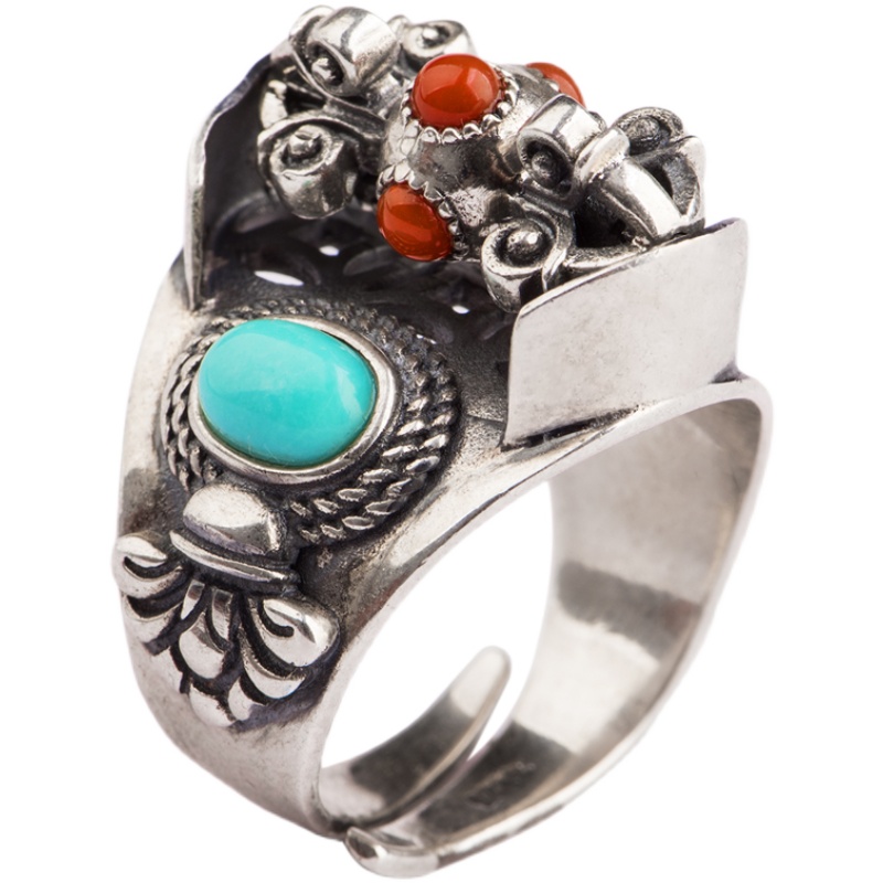Diamond pestle bin giri handmade ring S925 pure silver male and female personality opening ring inlaid jewel for gift