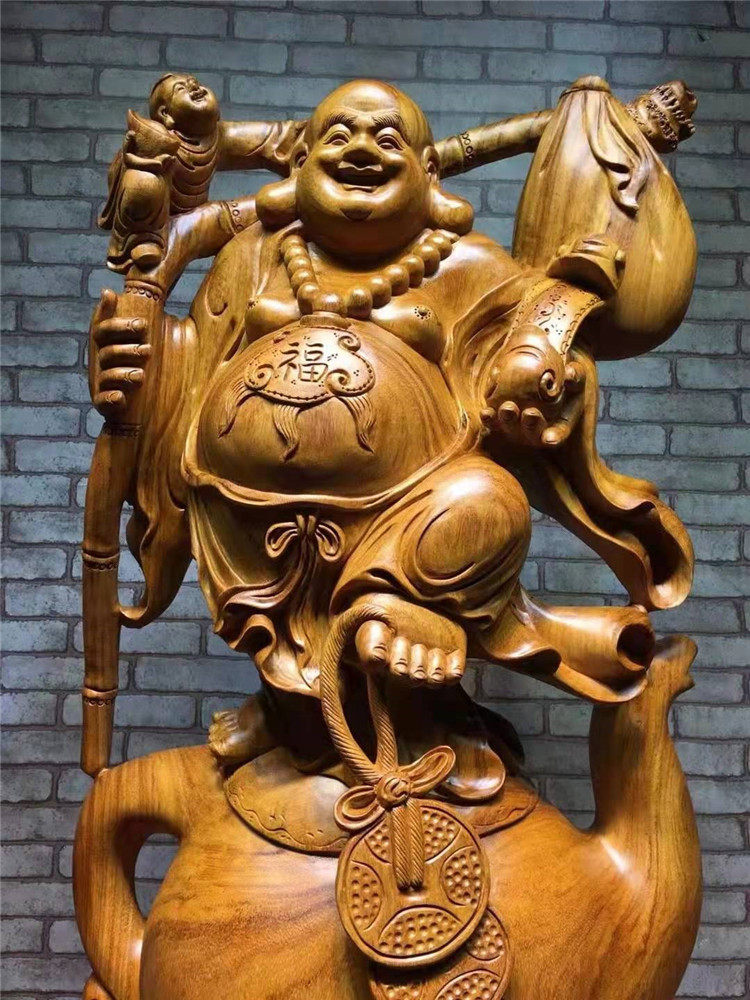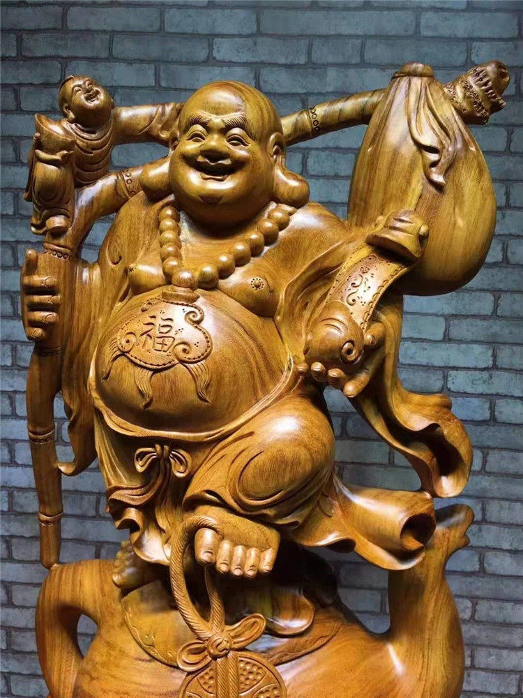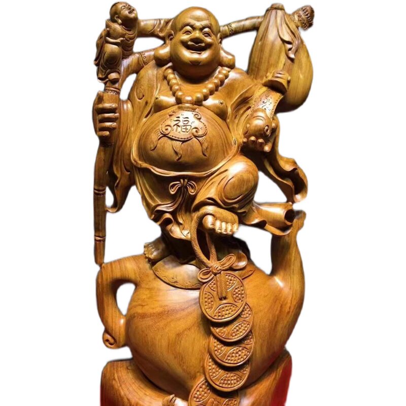 Wood Sculpture Laughing Buddha Craftsmanship Gift Pendulum figurates Sculpted Decoration Home Root Carved-in-the-wood Rosewood wood Millver